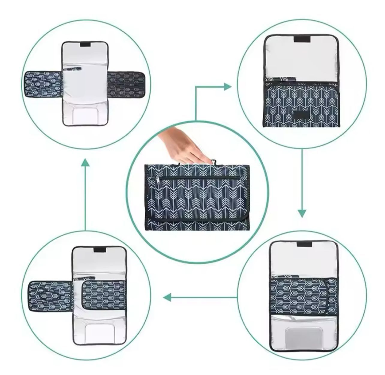 Simplifiez les sorties avec bébé grâce à notre Waterproof Portable Diaper Changing Pad ! Conçu en polyester imperméable et élégant avec un motif géométrique moderne, ce tapis de change est compact, pliable et ultra-pratique pour tous vos déplacements. Il inclut un distributeur de lingettes intégré, plusieurs poches de rangement et un coussinet en mousse mémoire pour un confort optimal de bébé. Léger et facile à transporter, il s’accroche à la poussette, se glisse dans un sac à dos, et convient aussi bien pour maman que pour papa !