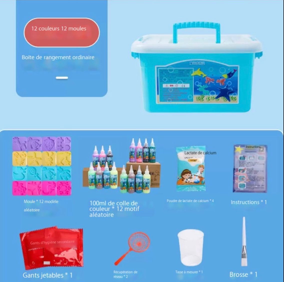 Offrez à vos enfants une expérience artistique fascinante avec ce Kit de Peinture 3D magique dans l’eau ! Grâce à une colle colorée spéciale et à des moules amusants, vos enfants pourront donner vie à des créatures marines et autres formes rigolotes qui prennent forme en 3D dès qu’elles touchent l’eau.🎨 Contenu du coffret :