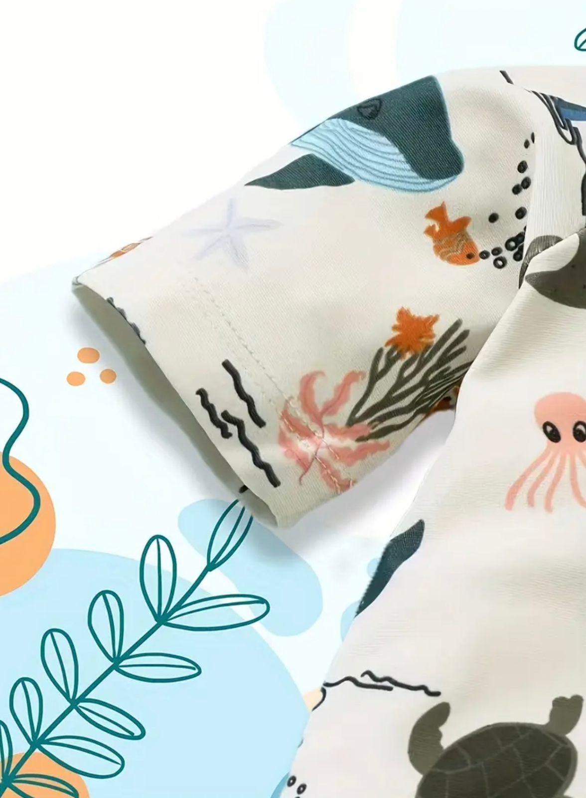 Offrez à votre petit explorateur un été plein d’aventures avec notre adorable maillot de bain une pièce au motif océan. Confortable, pratique et ludique, il est parfait pour les journées à la plage, les jeux d’eau et les baignades ensoleillées.