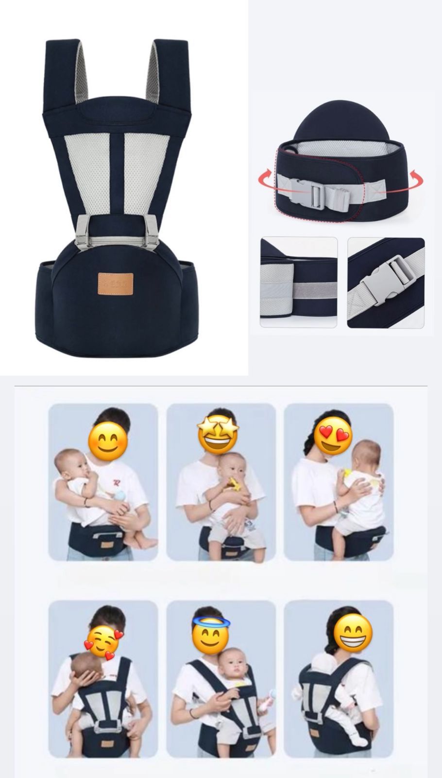 Fabriqué de matériaux de qualité supérieure, ce porte bébé avec siège va pouvoir fournir sécurité et confort à votre bébé, ainsi qu'à tous les parents. Doté aussi d'un Design ergonomique 6 en 1 : Vous pouvez alors choisir entre 6 façons de porter votre bébé en fonction de sa croissance .